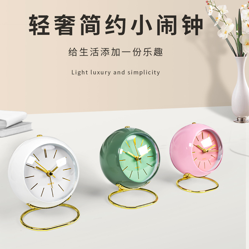 軽豪華金属創意シンプル目覚まし時計装飾置物学生児童目覚まし時計客間寝室石英夜光時計