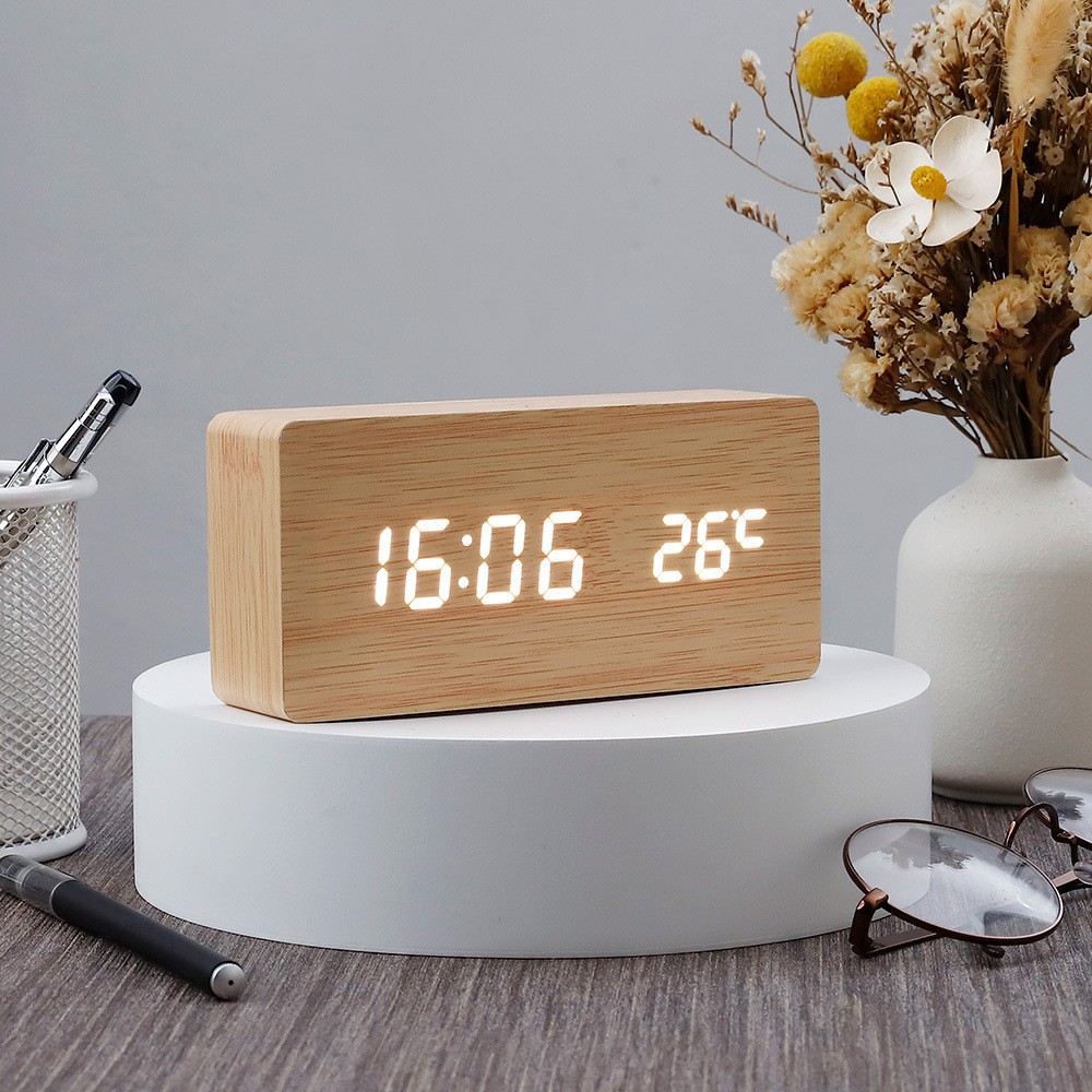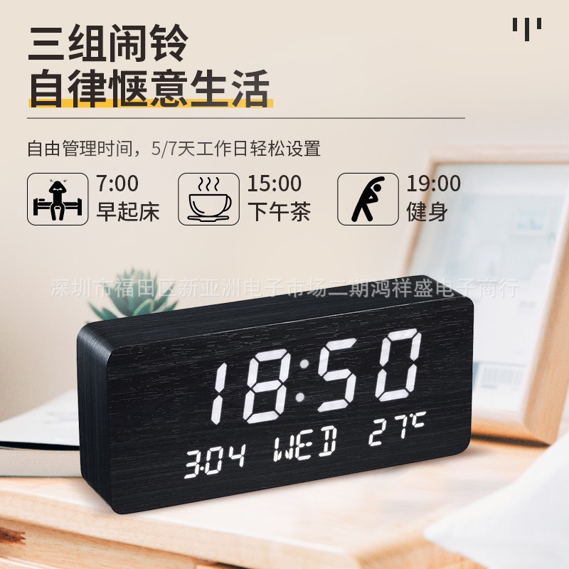 目覚まし時計ベル創意万年暦目覚まし時計led木頭鐘音控学生ロゴプレゼントクロスボーダー専用静音
