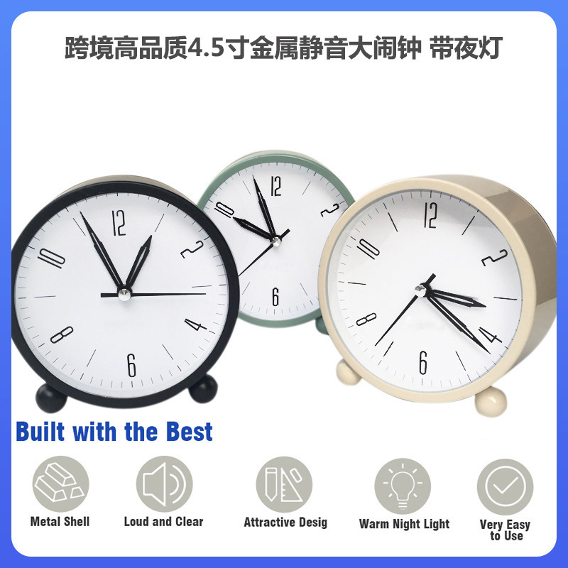 ✅ メーカー卸売 4.5inch レトロメタルサイレント大型目覚まし時計ナイトライト付き子供と学生デスクトップ時計