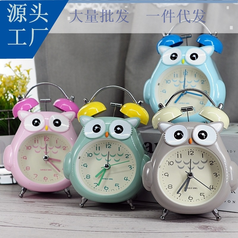 番頭はアニメフクロウの置き時計の学生が子供の静音でベルを鳴らす目覚まし時計を大量に卸売りすることを勧めている