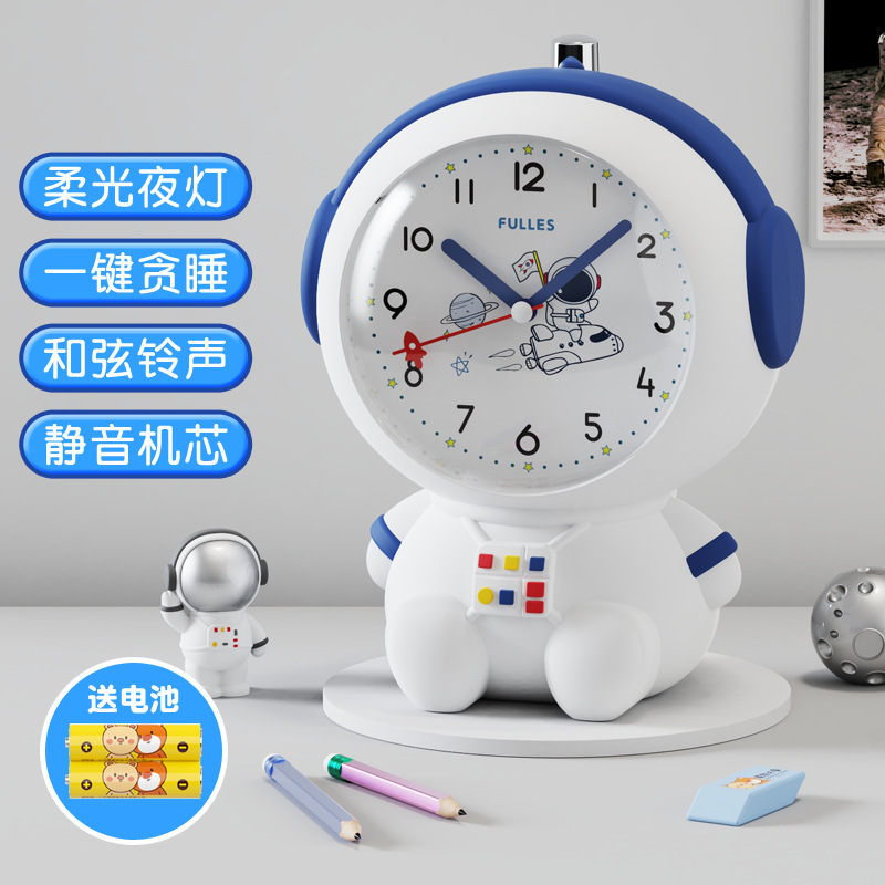 宇宙飛行士の小さい目覚まし時計の学生専用の起きた神器の子供の男の子の女の子の静音の時計は自律的なベルを学びます。