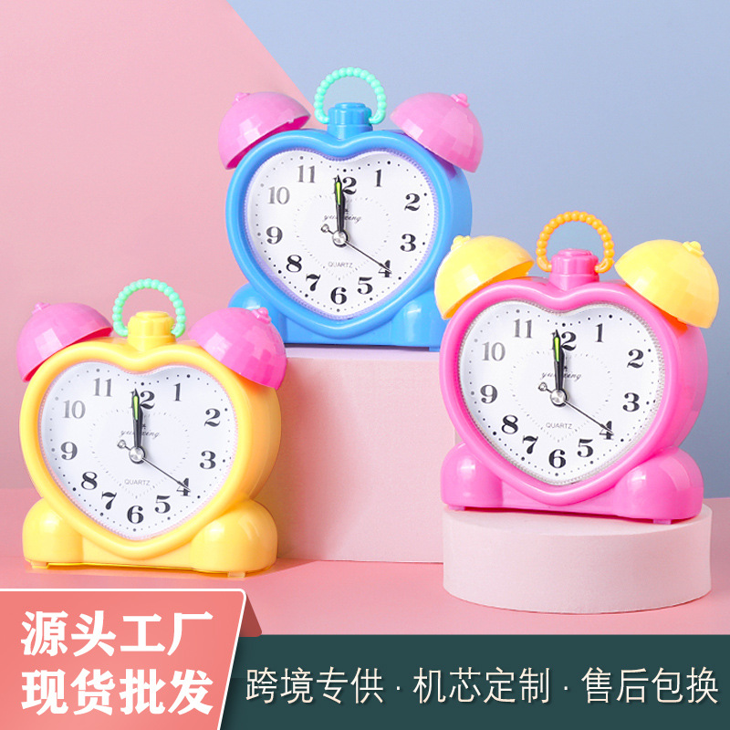 ハート型のかわいい学生向けデスクトップベッドサイド大音量メカニカル目覚まし時計、子供用漫画ギフト、ジャンプ秒ムーブメント付き