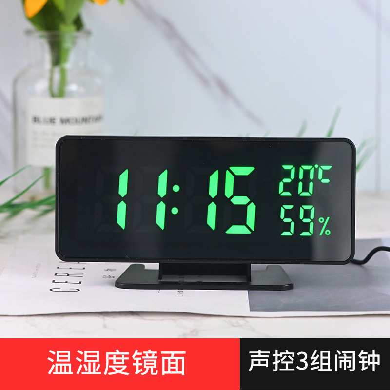 Led鏡面デスクトップ目覚まし時計カレンダー温湿度台時計シンプル電子デジタル時計メーカー卸売りプラグイン時計