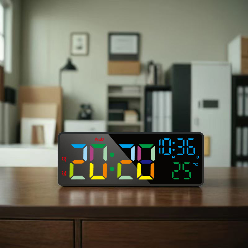 21inchLED シンプルなデジタル電子時計リビングルームの壁時計大きなデジタル高精細永久カレンダー電子時計 8025
