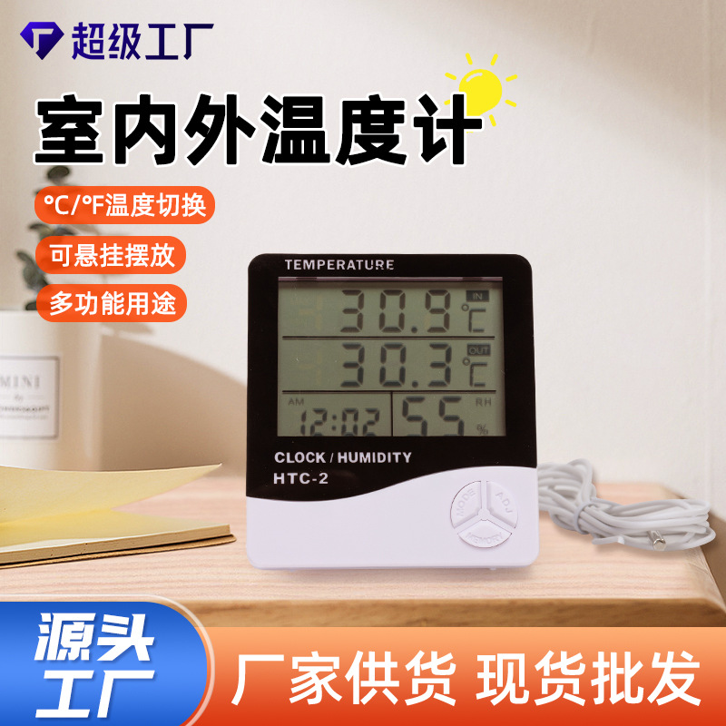 HTC-2室内外ダブル温度電子温湿度計大画面家庭用電子温湿度計プローブ付き