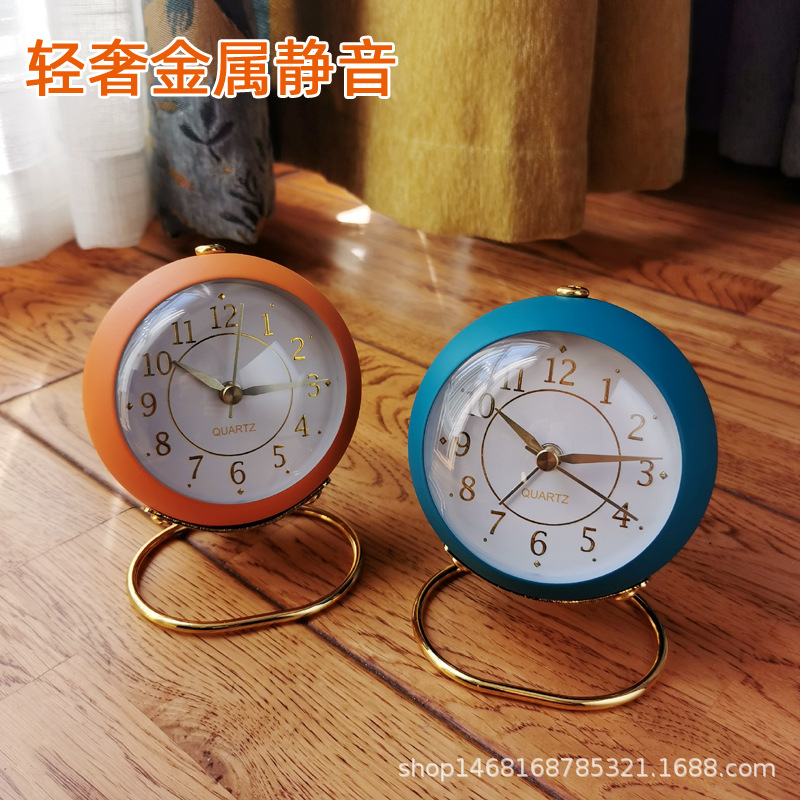 現代の金属の静音の小さい目覚まし時計の子供の電子の台の時計のデスクトップの学生のベッドの上の夜光の石英の時計の卸売り