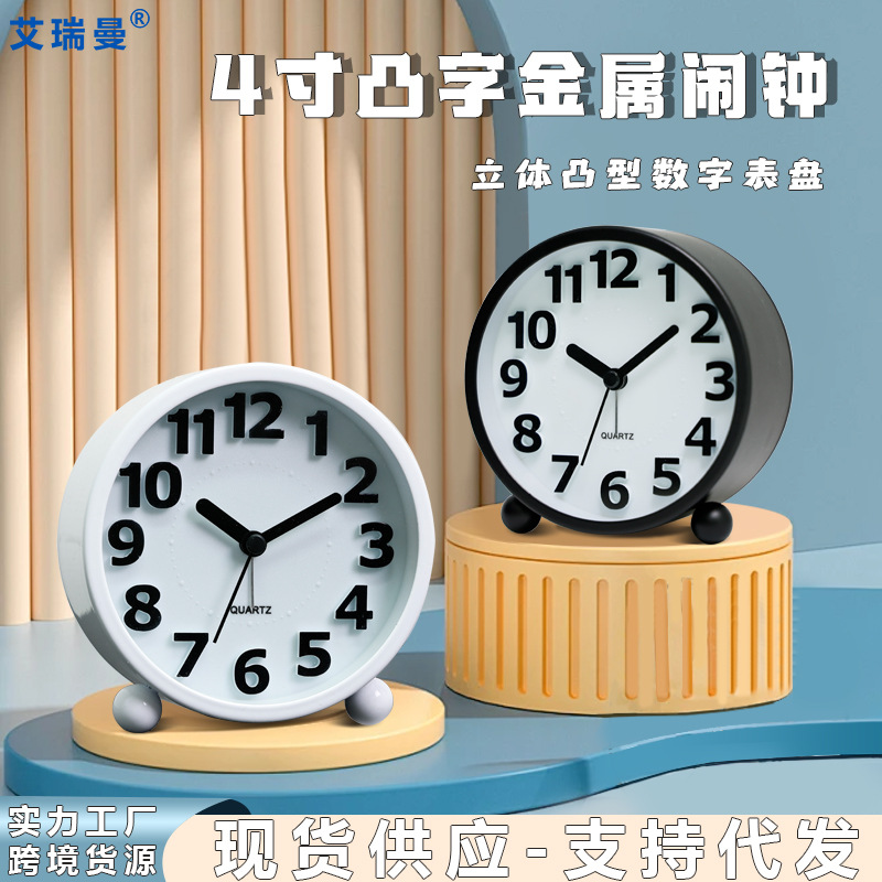 レトロな鉄芸の子供の目覚まし時計の学生寮の怠け者のベッドの頭の時計の越境のアイデアの凸字のデスクトップの時計の卸売り