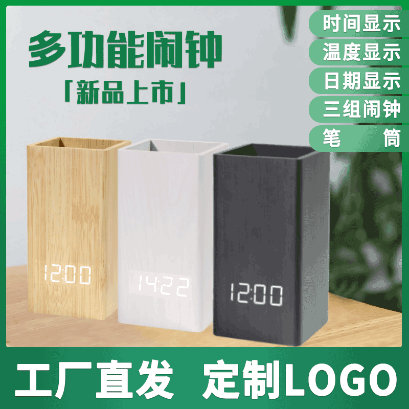 インテリジェント音声起動サイレント LED 木製時計木製時計ペンホルダー目覚まし時計工芸品ギフト USB 充電