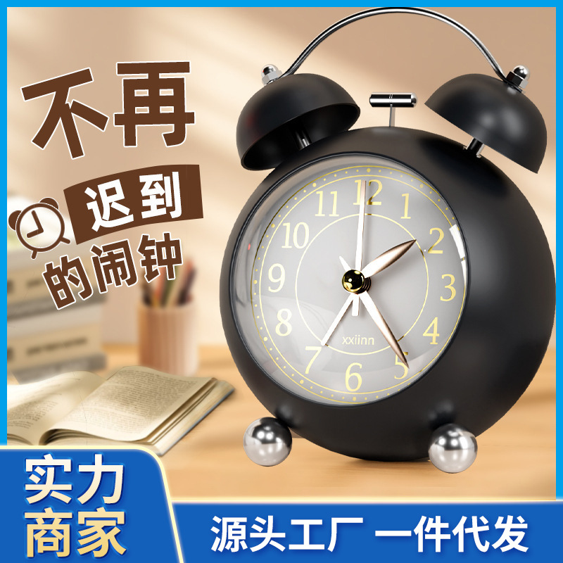 超大型レトロなベル目覚まし時計寝室の小夜灯静音時計は創造的な贈り物の学生のベッドの時計を飾っている