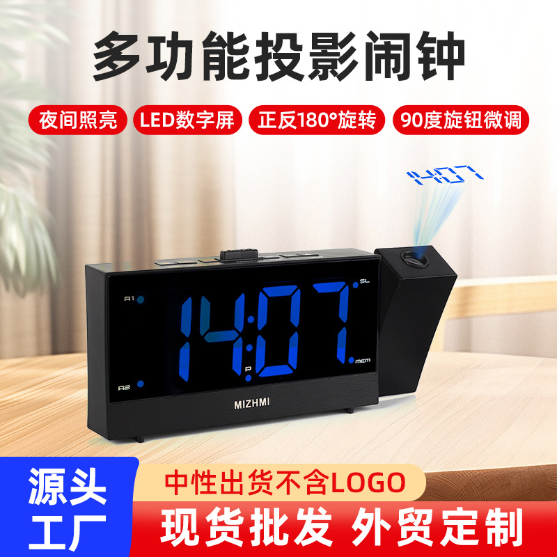 クロスボーダー木目調 1.8inch 多機能 USB 充電ラジオクリエイティブ LED 電子目覚まし時計投影時計卸売