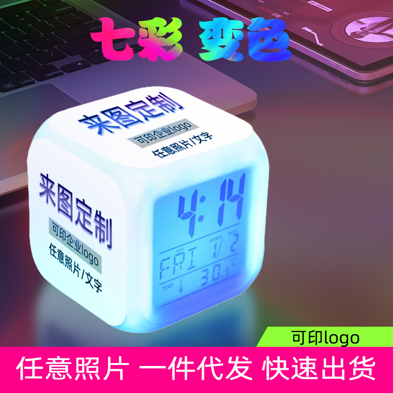 目覚まし時計はカラフルなled発光小夜灯のクリエイティブギフトロゴの祝日プレゼントをカスタマイズすることができます