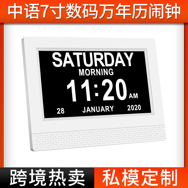 7インチ時計機デジタルカレンダー電子目覚まし時計デジタル万年暦老人目覚まし時計デジタルフォトフレーム