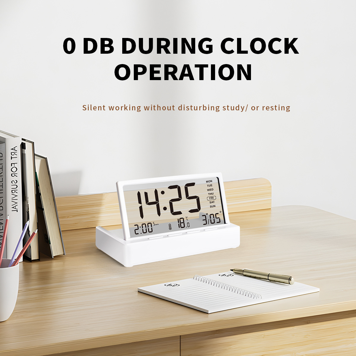 無線電波時計自動学校時スマート電子バックライトナイトライト時計寝坊目覚まし時計温湿度万年暦
