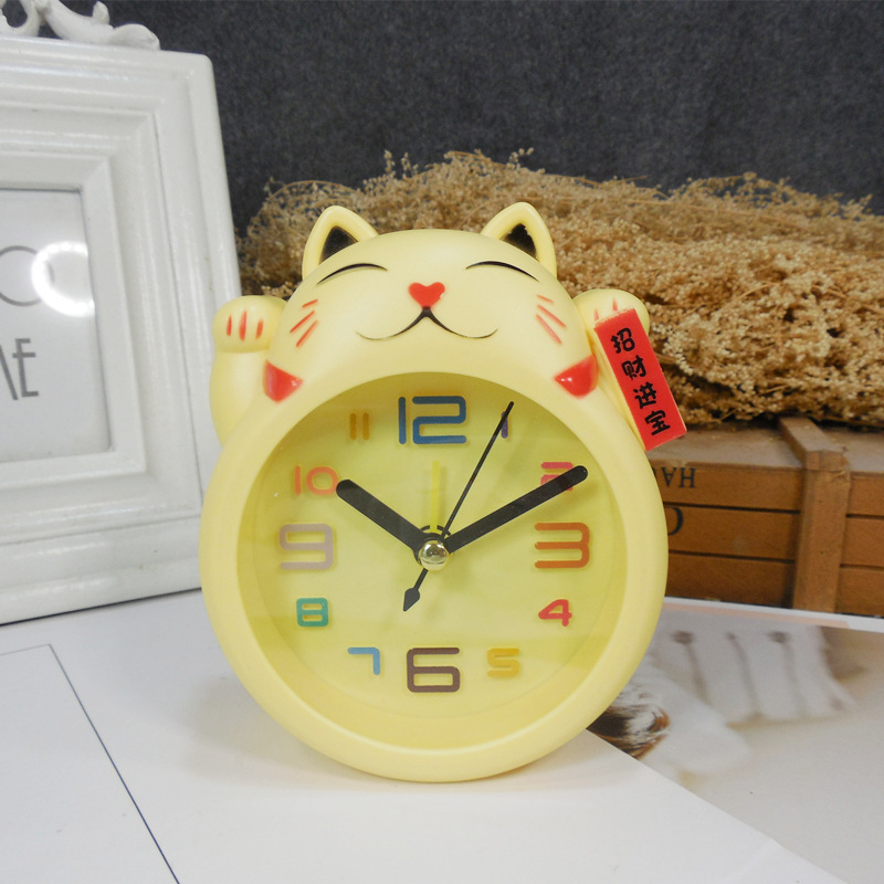 子供の学生のミニのベッドの目覚まし時計のアイデアの漫画の招き猫の目覚まし時計のかわいいデスクトップのプラスチックの時計の置物