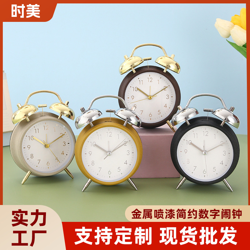 金属塗装シンプルなデジタル平頭針ベル目覚まし時計子供学生のベッドの上の夜の明かりのアイデア