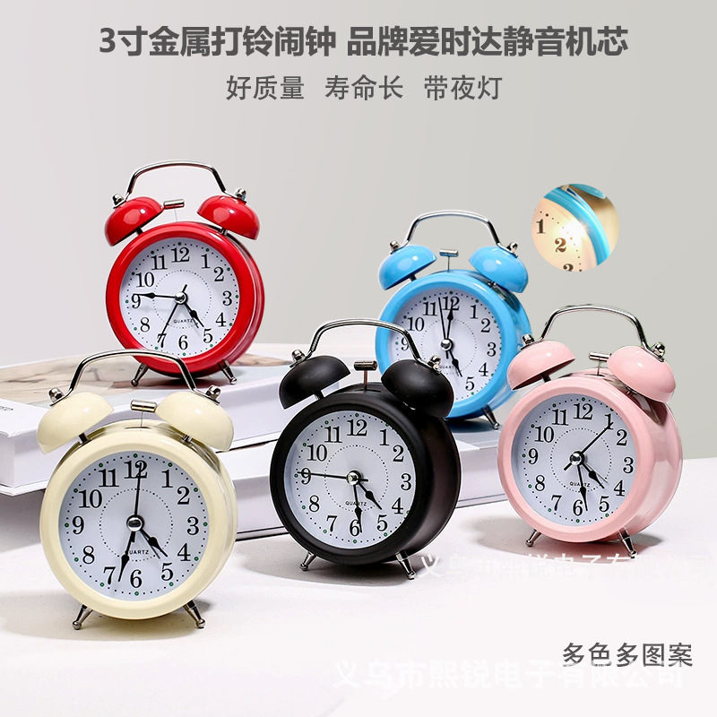 プロモーション3インチ金属ベル目覚まし時計愛時達上質静音芯大ベル双耳ベル