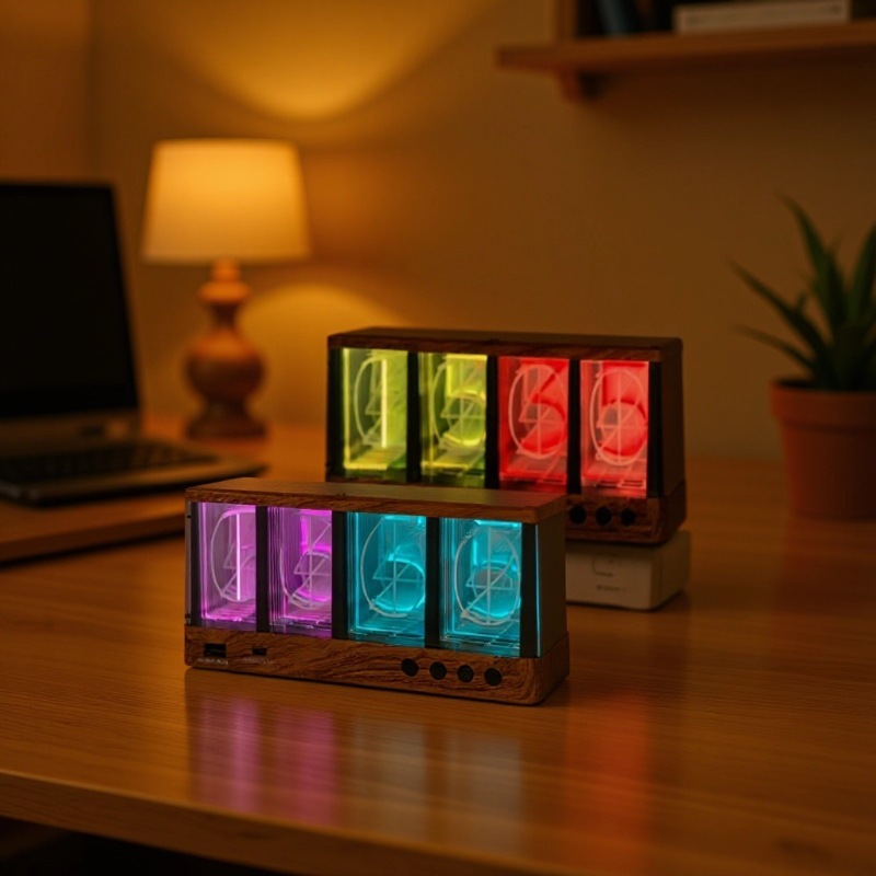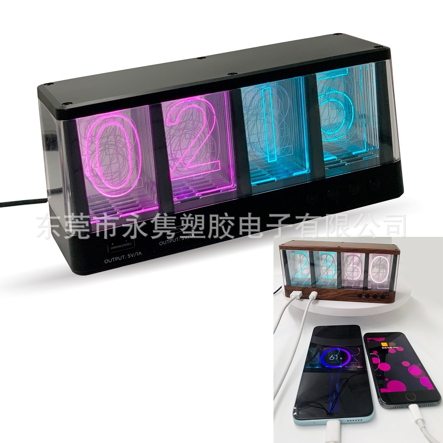 USB A USB C携帯電話充電ネオン雰囲気灯デスクトップレトロLED時計、レトロ家庭電子時計