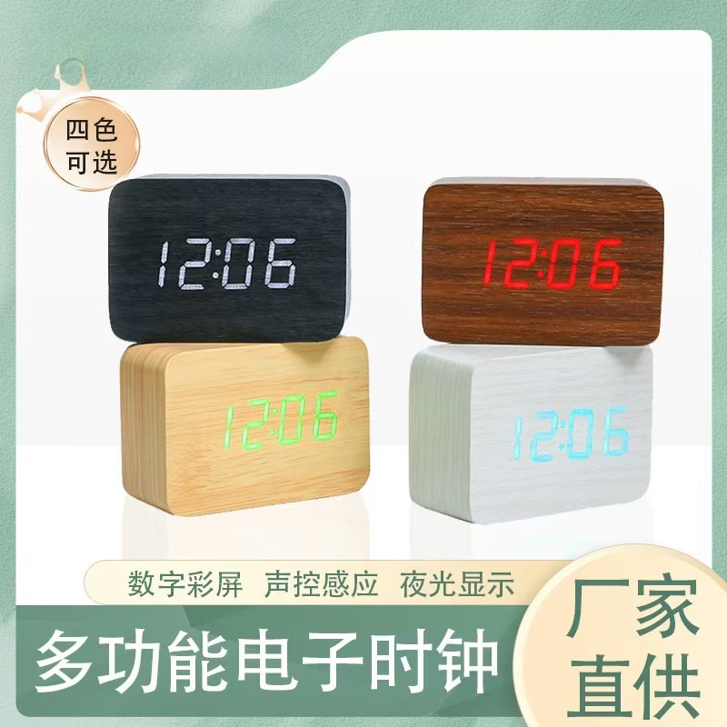 クリエイティブな夜光木製時計、学生のベッドサイドに置くおしゃれな静音片面壁掛け時計、多機能木製電子目覚まし時計