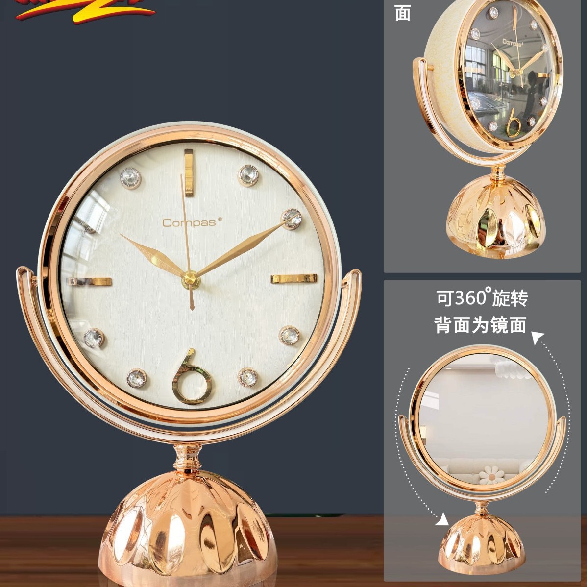 Combas 置時計リビングルームホームデスクトップライト高級シンプルな新しい中国風のサイレントミラーアートセンス寝室時計時計