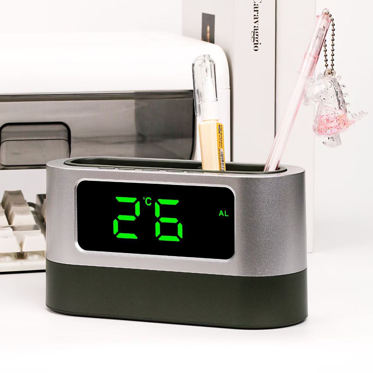 メーカー卸売りクロスボーダーデスクトップオフィスLED多機能ペン筒電子時計デジタル目覚まし時計は文房具を収納できます。