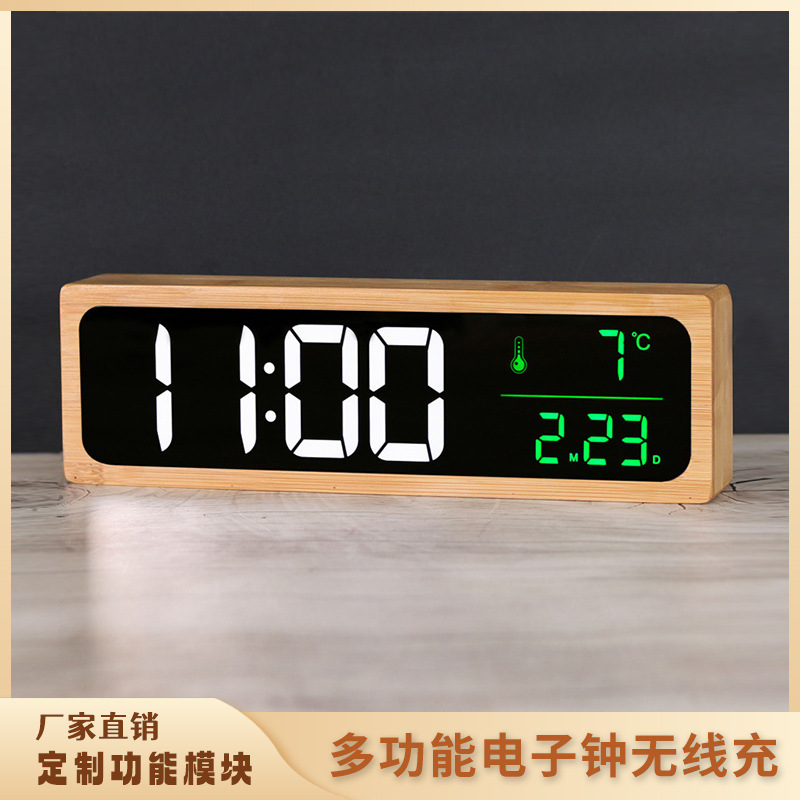 Led木製時計クリエイティブ日本風木製デジタル電子時計ワイヤレス充電デスクトップ目覚まし時計温度計付き日付