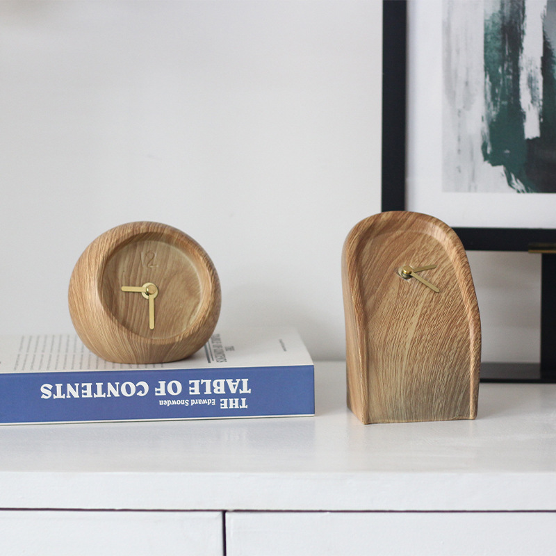 モダンシンプル北欧置物置き時計台時計クリエイティブ木目時計リビングルーム寝室サンプルプレート間装飾品置物