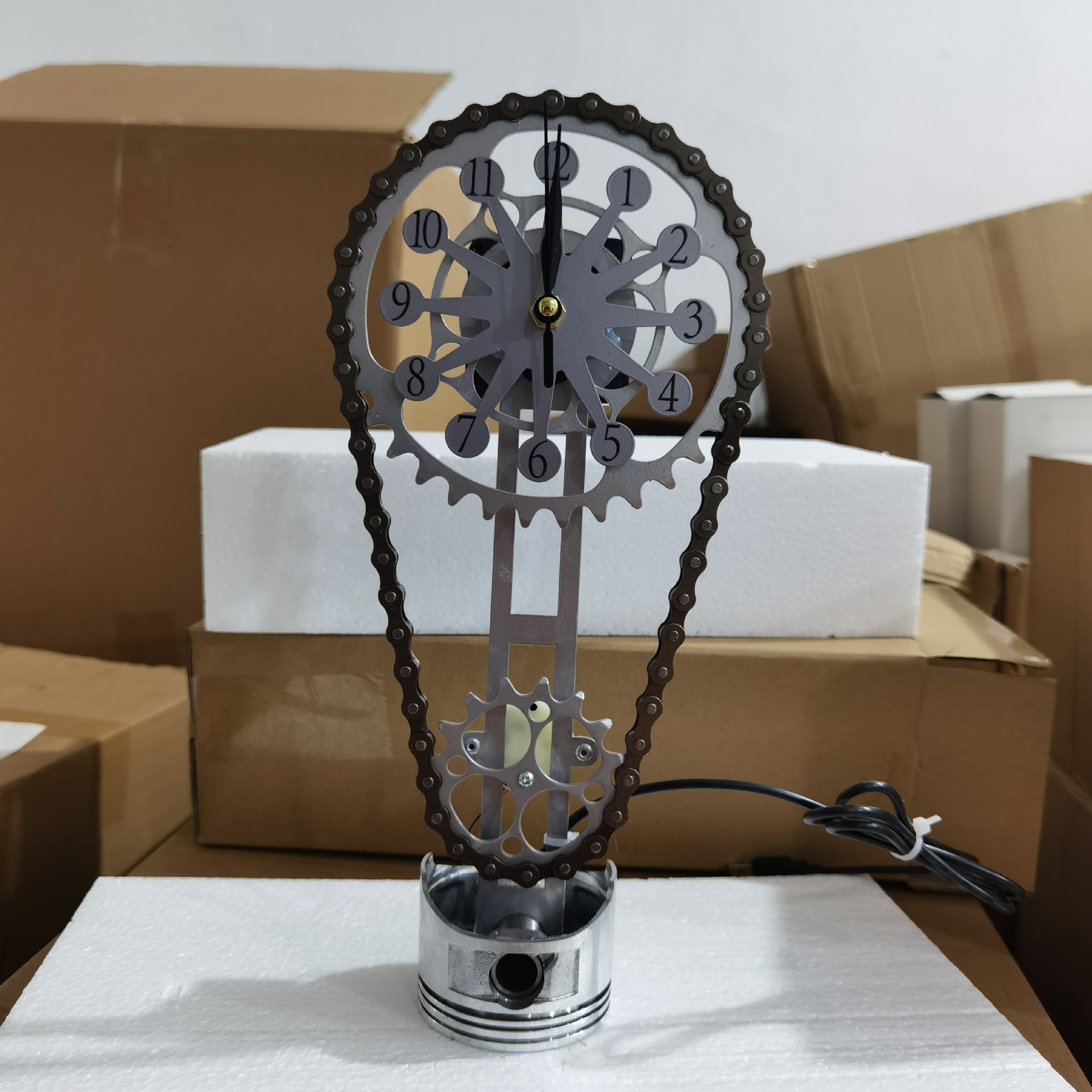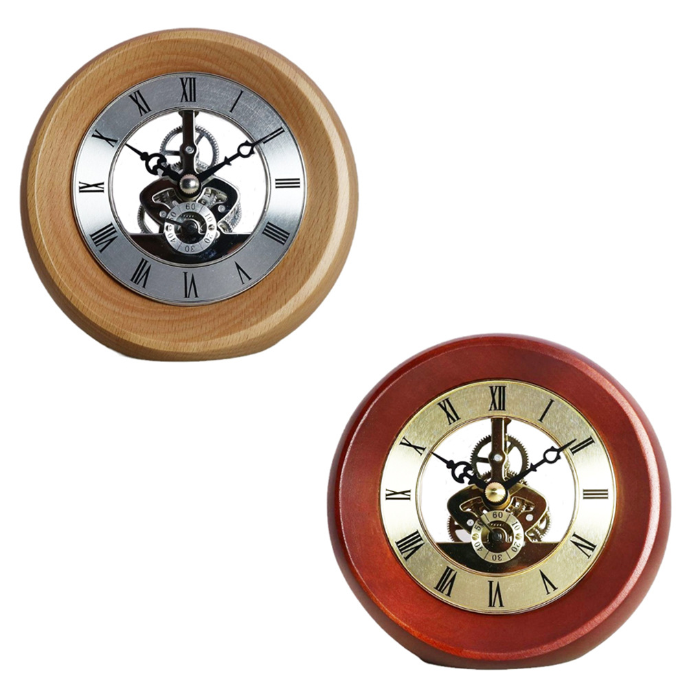 国境を越えた新製品直径130mm実木透視置き時計家庭装飾台時計創造歯車時計時計