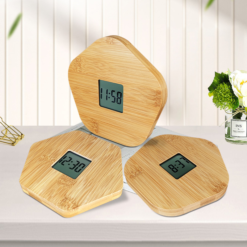 花柄多角形led竹木鐘は時間を見て家を飾って寝室の書斎の客間を飾ることができる