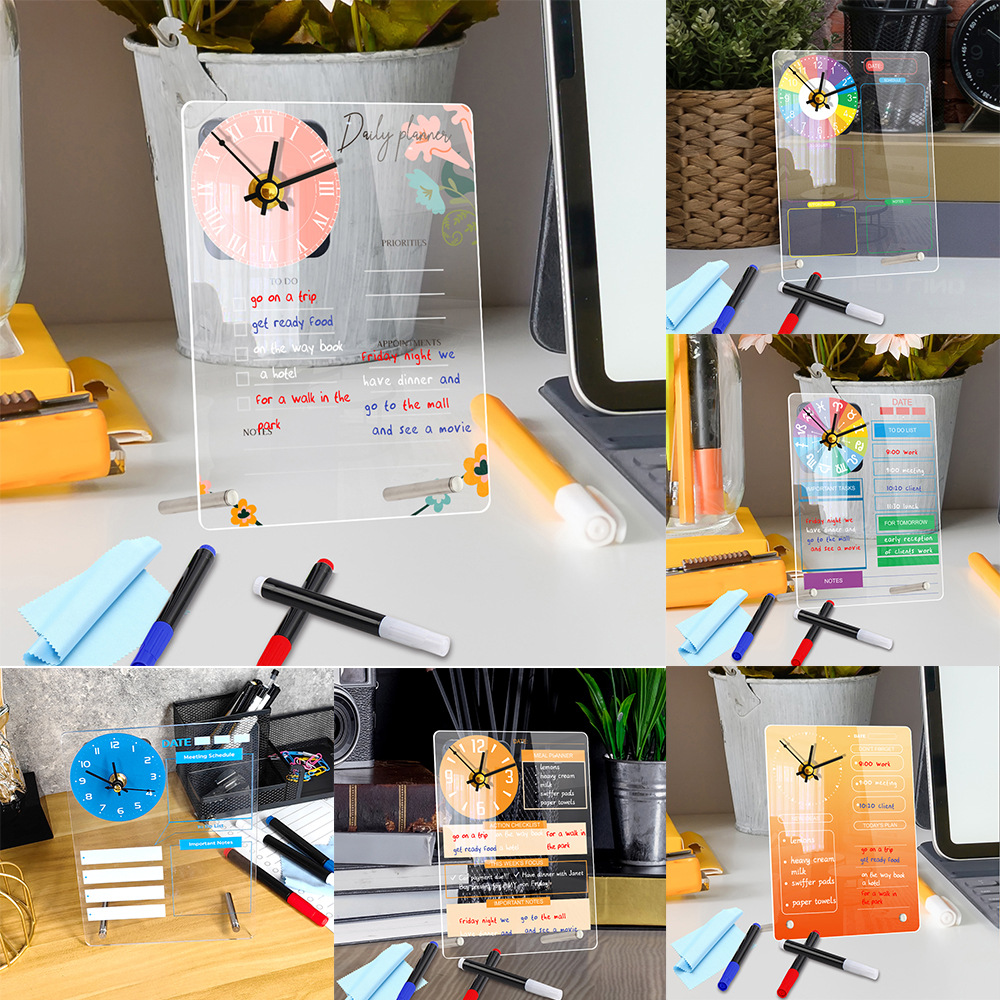 CC250-255アクリルデスクトップメモ帳掛け時計計画板デスクトップ置き時計日計画テーブル振り子時計