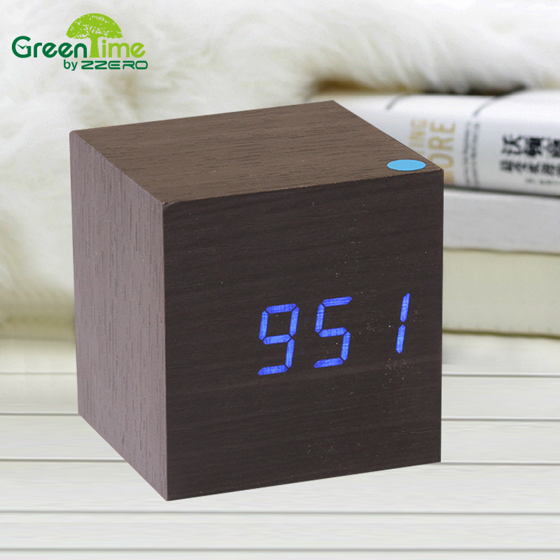 新しい正方形の青いライトの美しい静音の声は電子の木の時計を制御します。