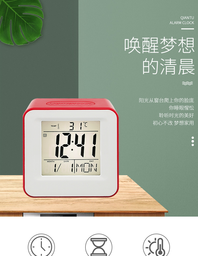 クリエイティブスマートLEDバックライトデスクトップ新型目覚まし時計静音デジタルデスクトップ時計寝室学生電子台時計