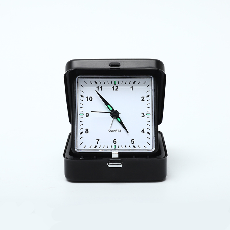 折り畳み式旅行時計の正方形の金属ケースと夜光針を組み合わせて便利に携帯します。