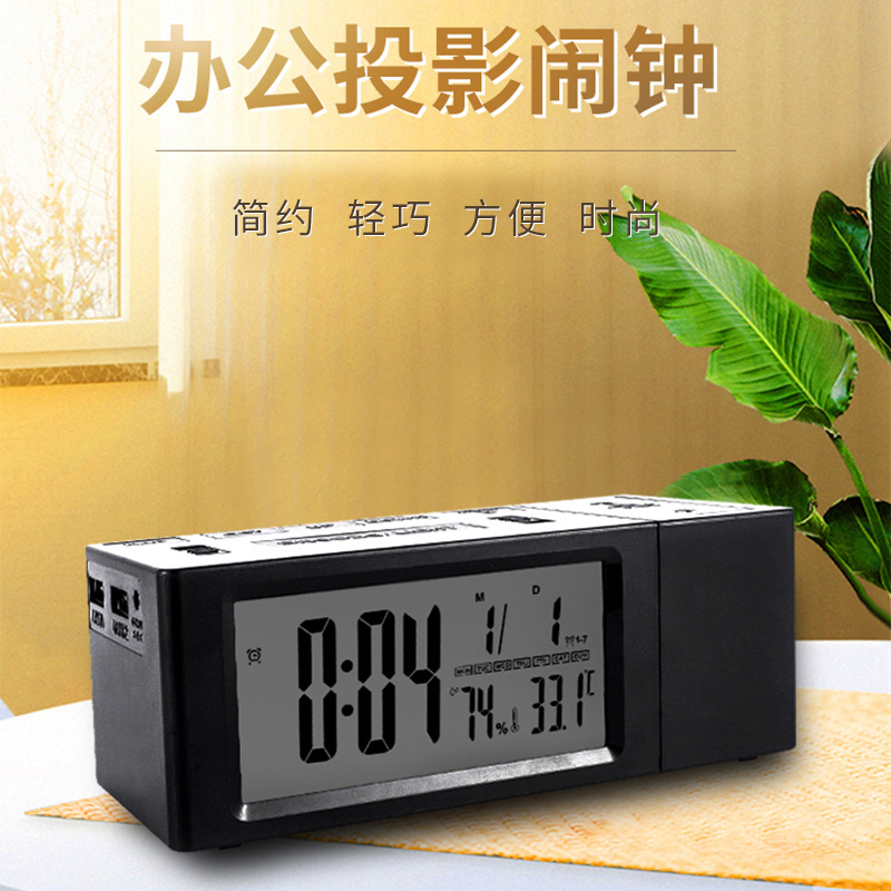 目覚まし時計室内室外温度表示ダブル目覚まし時計黒バックライト天気予報所投影目覚まし時計