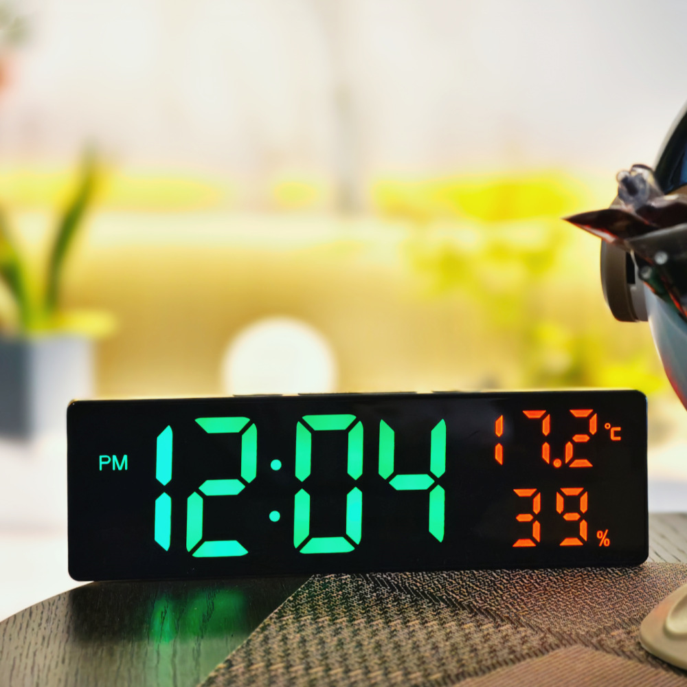 大画面カラーデジタル時計 温度・湿度表示 壁掛け時計 リビング 高級感 壁掛け目覚まし時計 クリエイティブ時計 ギフト