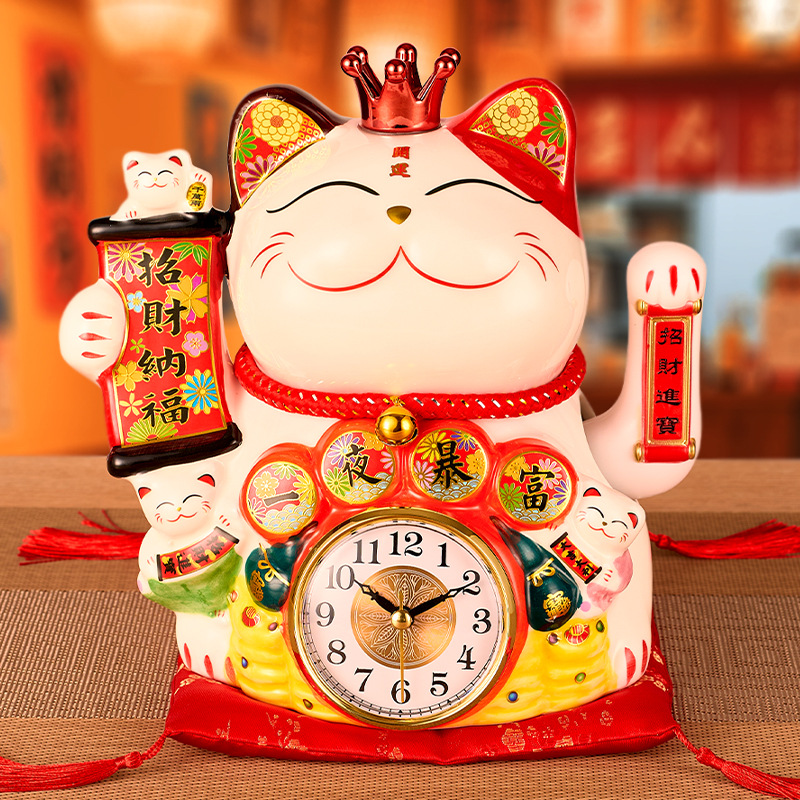 新製品フォーチュンキャット置時計セラミックシェイクハンドラッキーキャット置時計新築祝いオープニングショップフロントデスクレジホームリビングルーム