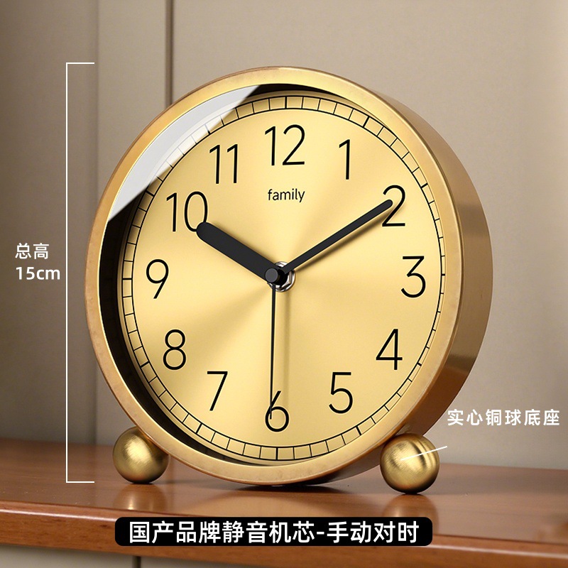 真鍮シンプルな卓上時計ホームデスクトップ時計サイレントデスクトップ時計ファッションカウンタートップベッドサイドクォーツ電波時計