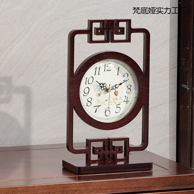 新しい中国風のノスタルジックな無垢材のデスクトップ時計リビングルームの置き時計寝室の装飾品テーブル