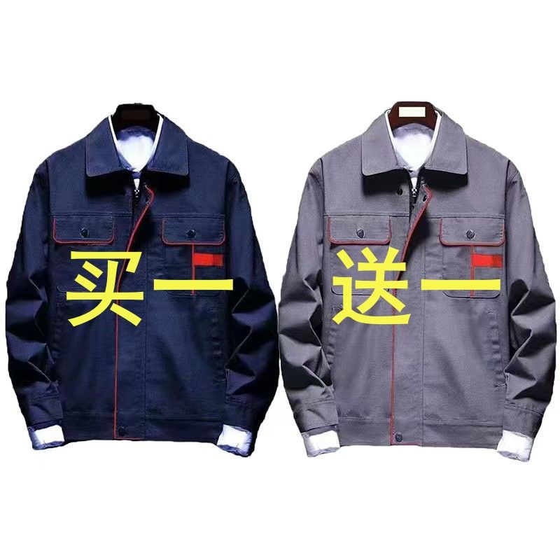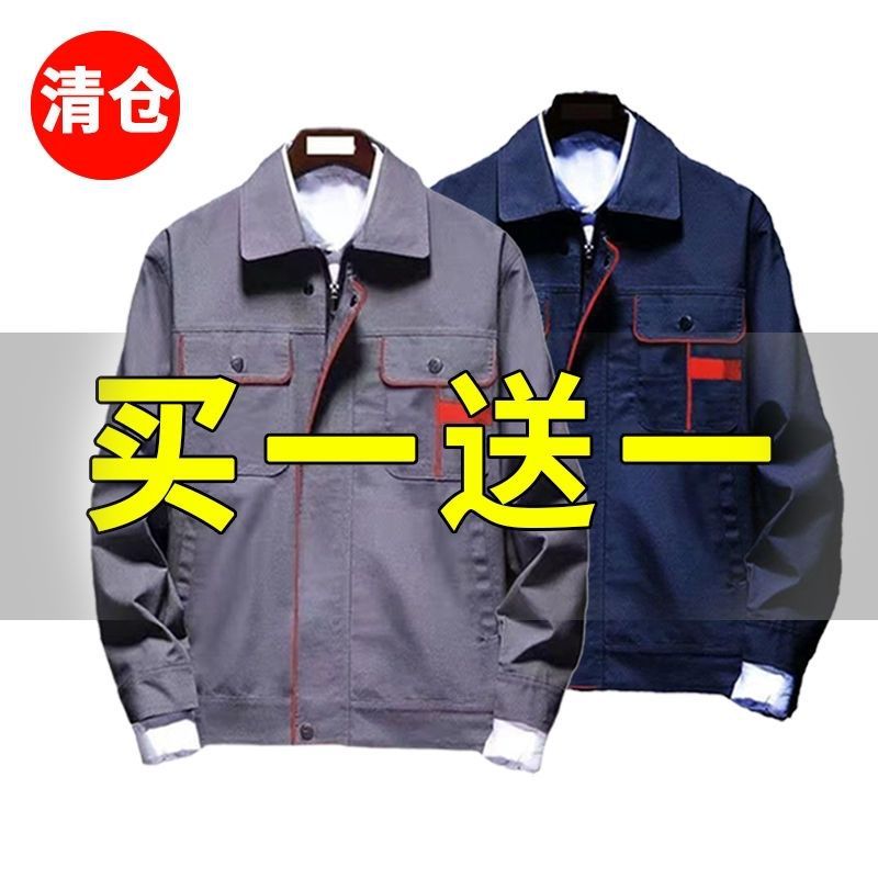 長袖綿作業服セット男性耐摩耗性労働保険服電気溶接労働者上着自動車修理工場服卸売り