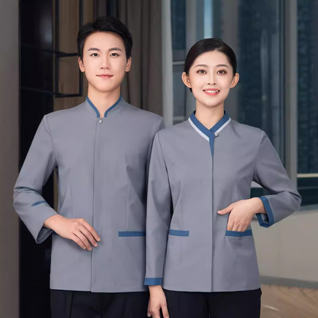 色合わせの三角清掃員の作業服の長袖の女性の不動産の客室の従業員の清潔なおばさんの大きいサイズの秋冬
