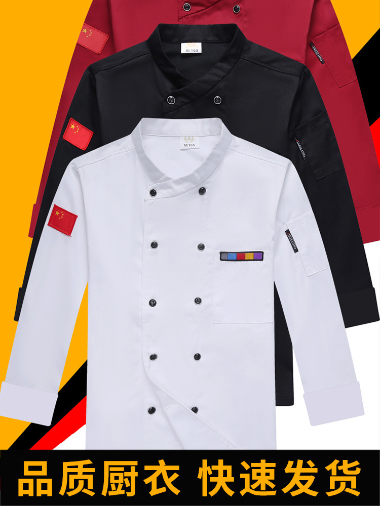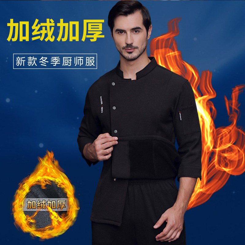 高級ベルベット料理人作業服男性中袖秋冬服女性ホテル洋食店品質料理服印刷七分袖