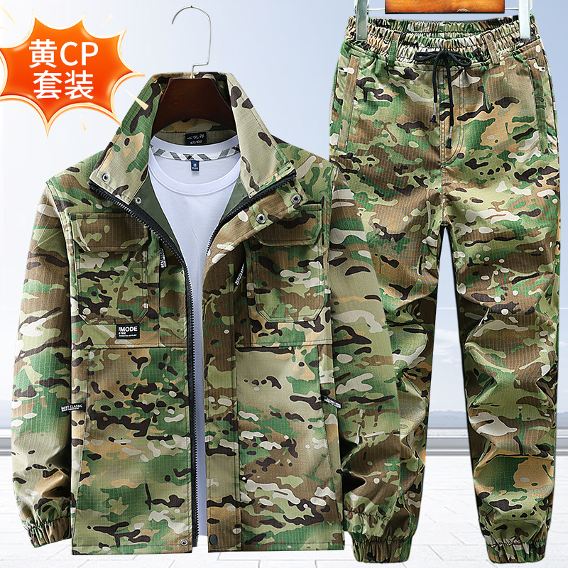 迷彩作業服スーツ男春秋は耐摩耗性のある自動車を厚くして工事現場の労働保険服を修理します。
