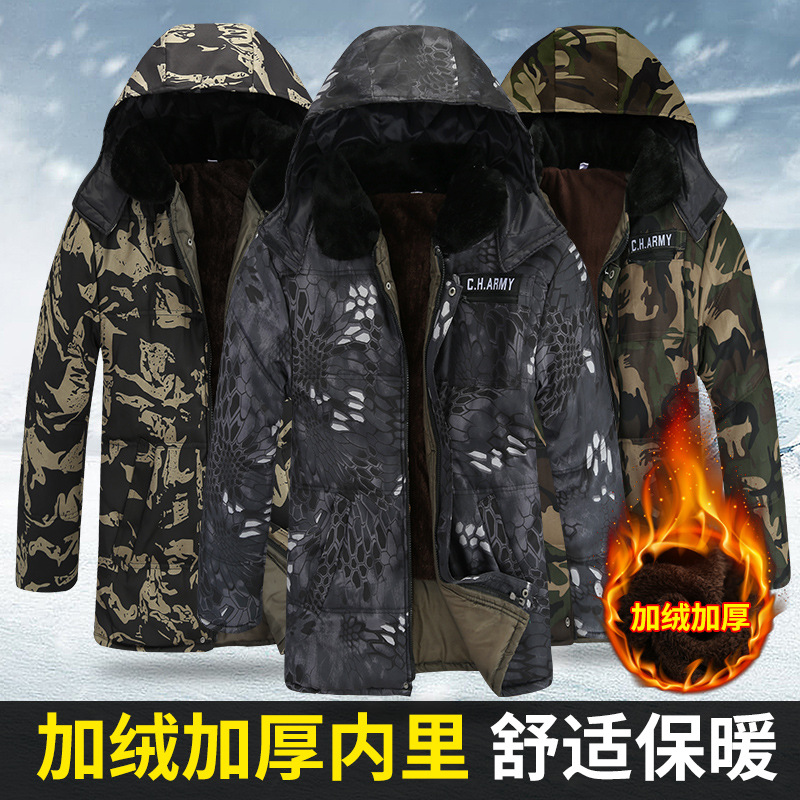 迷彩服の綿服の男性は冬に綿入れを厚くして防寒します。