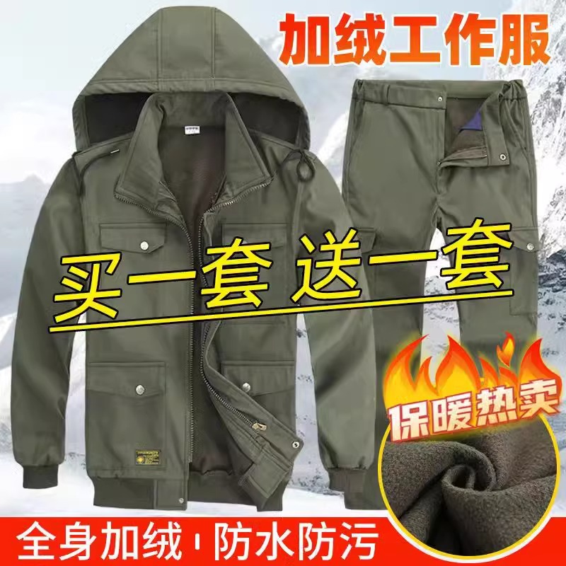冬の全身ベルベット作業服セット男は防寒保温建築現場で働く耐摩耗性のある労働保護を厚くした