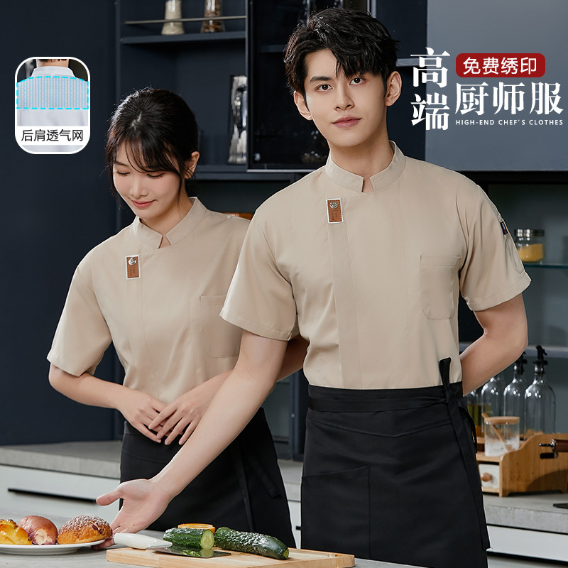 シェフ作業服半袖ケーキ店焙煎専用レストラン食堂薄手通気飲食シェフ服夏男