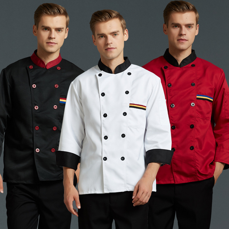 シェフ服七分袖シェフ服男性キッチン制服中袖長袖作業服半袖夏工装制服