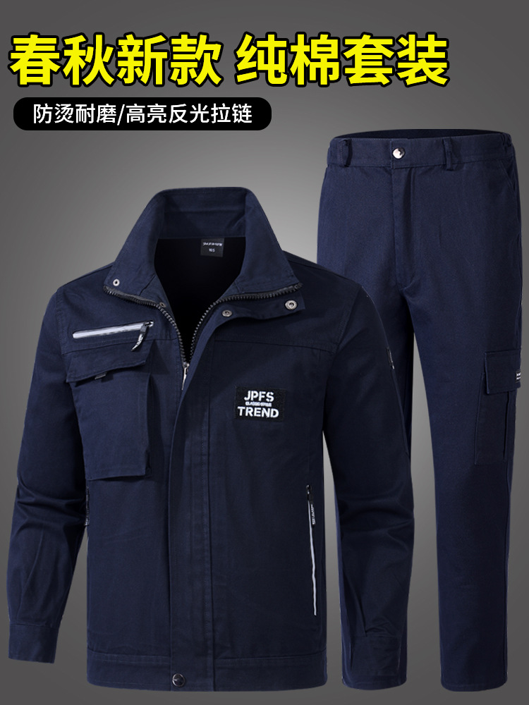 秋冬厚手反射作業服セット男性長袖工装耐摩耗自動車修理工場溶接工服労働保険服卸売り