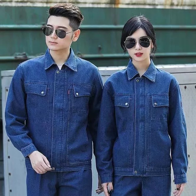 デニム作業服セット男性労働保護服綿耐摩耗性弾力防止溶接工装抗火花電気溶接春秋