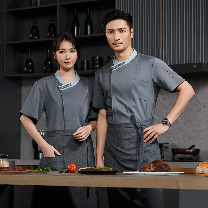 飲食料理長作業服半袖男ホテルレストランキッチンホテル焙煎グレー服装女