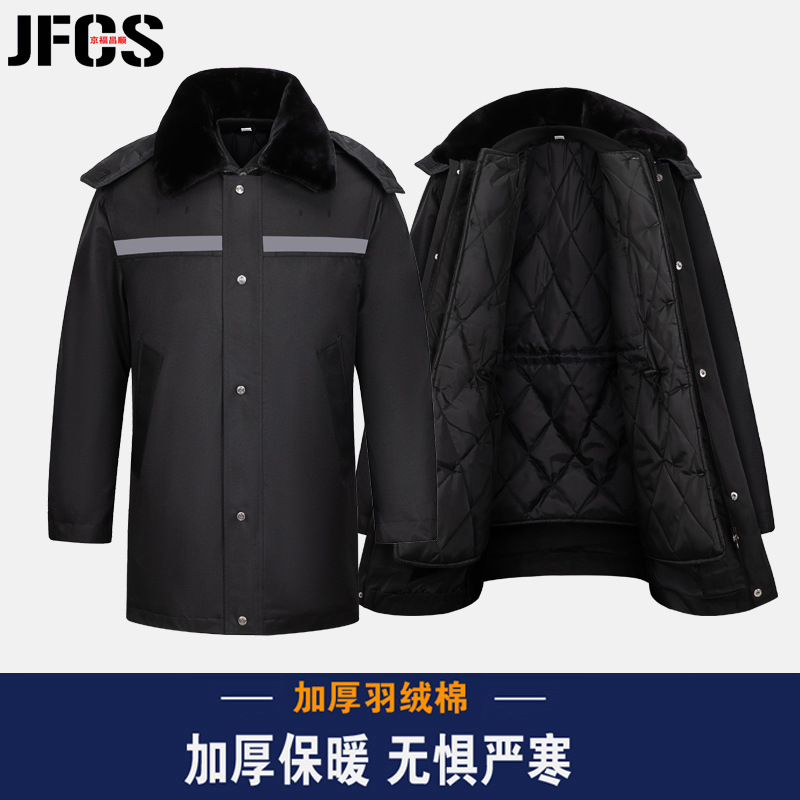 保安コート秋冬保安服厚手保温作業服反射条ダウン綿服多機能防寒服男