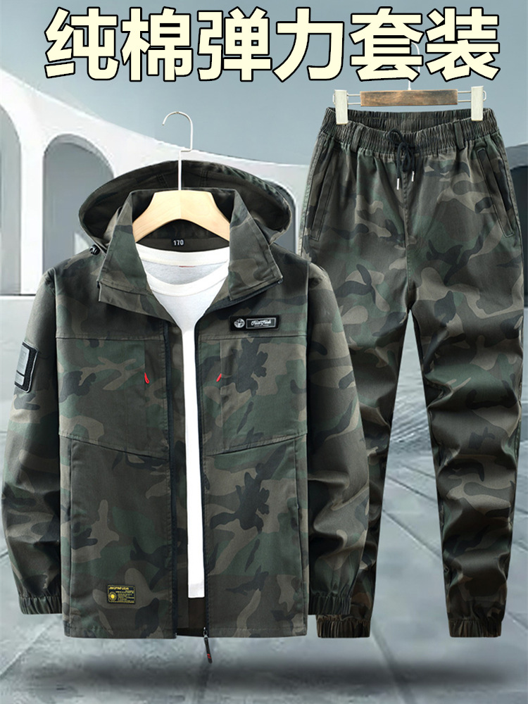 綿弾性迷彩作業服スーツメンズ耐摩耗性厚みのある労働保護服溶接作業服抗火傷屋外作業服